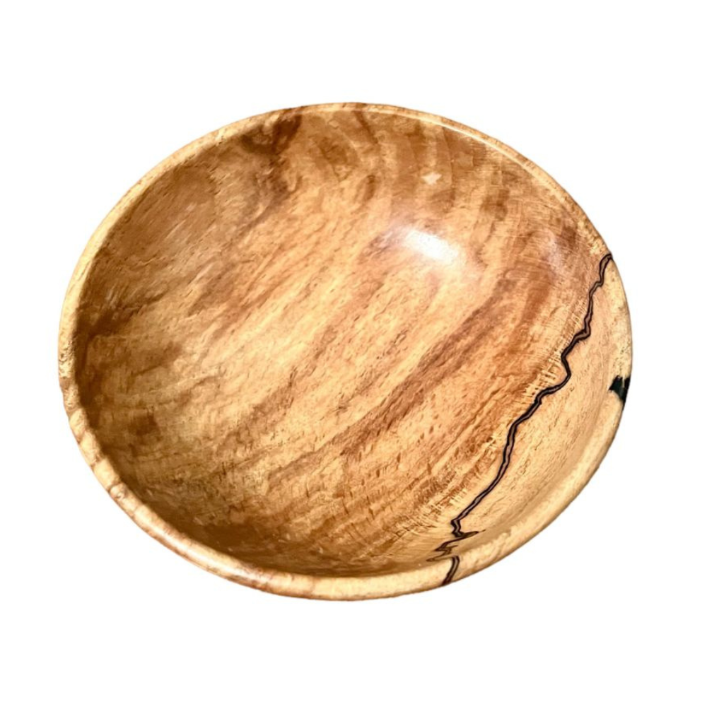 This petite bowl is hand turned out of spalted maple. It may be used for coins, rings, and small items. 4" wide by 1.5" tall.
